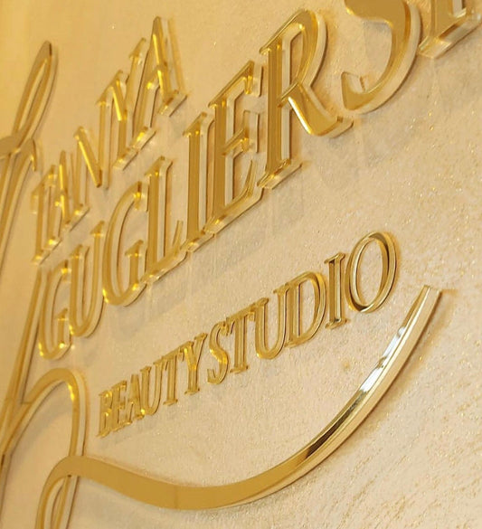 Insegna del beauty salon, insegna 3D personalizzata hall dell'ufficio, logo personalizzato e specchiato argento e oro