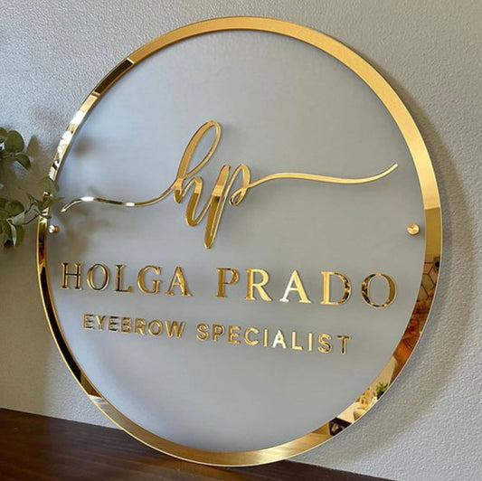 insegna centro estetico elegante in plexiglas cerchio tonda personalizzata con il tuo logo ristoranti, hotel per interni ed esterni color oro lettere rilievo