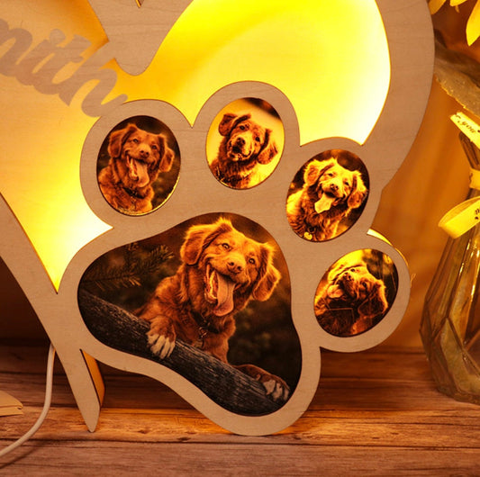 lampada cane zampa personalizzata con fotografia taglio laser regalo per fidanzati san valentino lampada ti amo lampada san valentino