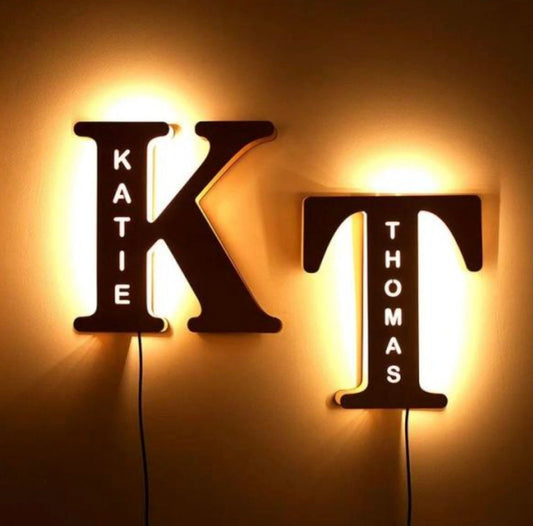 Nome dell'alfabeto in legno personalizzato, segno delle lettere / lampada da comodino, decorazione personalizzata della stanza