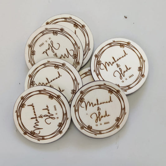 calamite in legno personalizzate in legno rotonde per bomboniera primo compleanno o battesimo matrimonio save the day