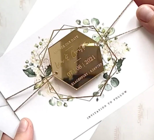 calamita esagonale in plexiglass specchiato rettangolare oro o argento Battesimo / Matrimonio / Nozze / Comunione