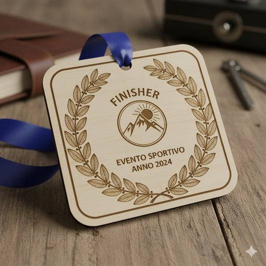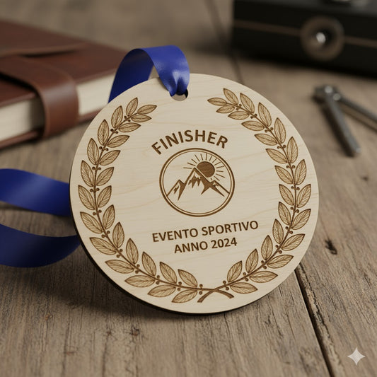 medaglie economiche green econlogiche in legno con incisione laser con nastro cordino per maratona basket calcio evento competizione