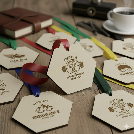 medaglie in mdf legno con incisione laser per competizione medaglia green ecologica personalizzate per gare competioni corse maratone