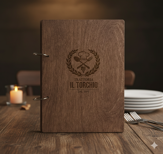 portamenu a5 Portamenu 10-50-100 pz in legno personalizzati con incisione laser logo ristorante