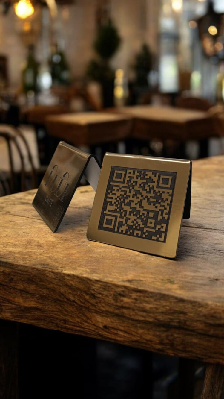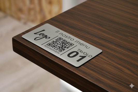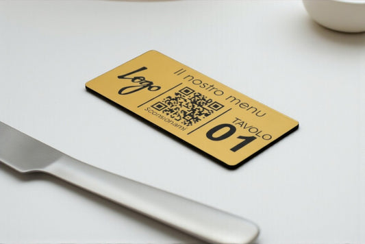 Cavalierino QR code Personalizzato, menu contactless, per ristorante, hotel, bar, QR code acciaio o ottone