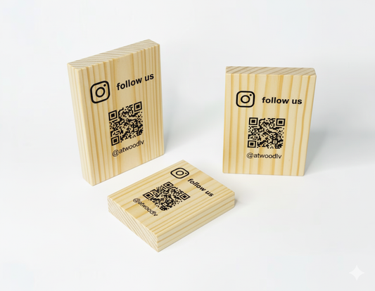 qr code in legno con incisione personalizzata logo per ristorante bar pub locale rustico