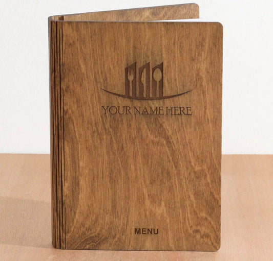 menu in legno personalizzati in legno con incisione laser fatti a mano portamenu su misura per ristorante pub bar formato a4