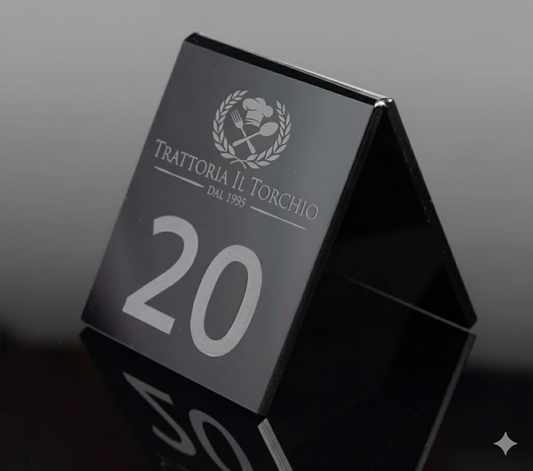 Cavalierino Segnatavolo/Menù in Plexiglass trasparente con Incisione Laser Personalizzata