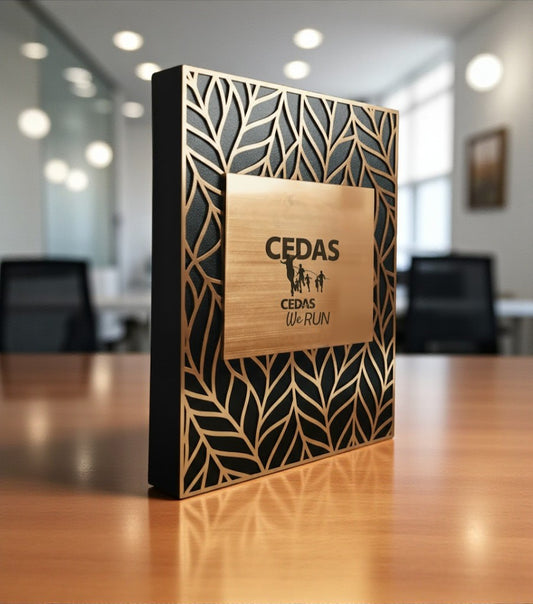 Trofeo blocco traforato con motivo floreale acciaio abs in pino massello, premio quadrato personalizzato abbinato a cornice flessibile in ottone, targa di riconoscimento, targa per traguardo raggiunto