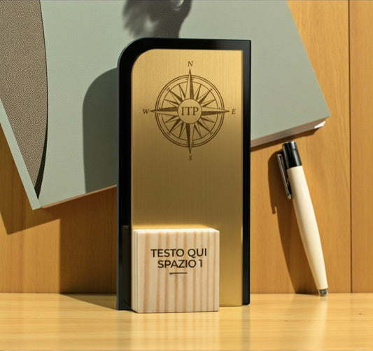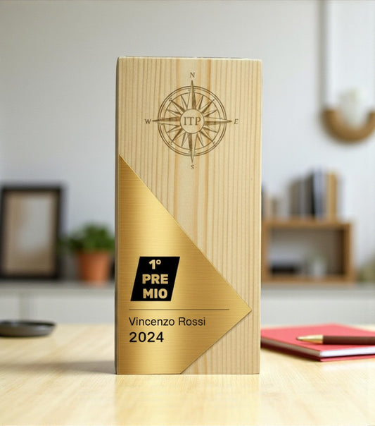 Trofeo blocco in legno personalizzato in oro abs spazzolato e legno Premio Design personalizzato su misura Targa moderna in legno Corsa unica Personalizzato