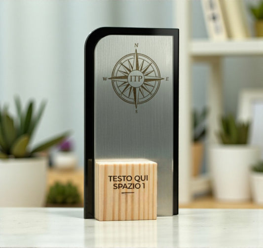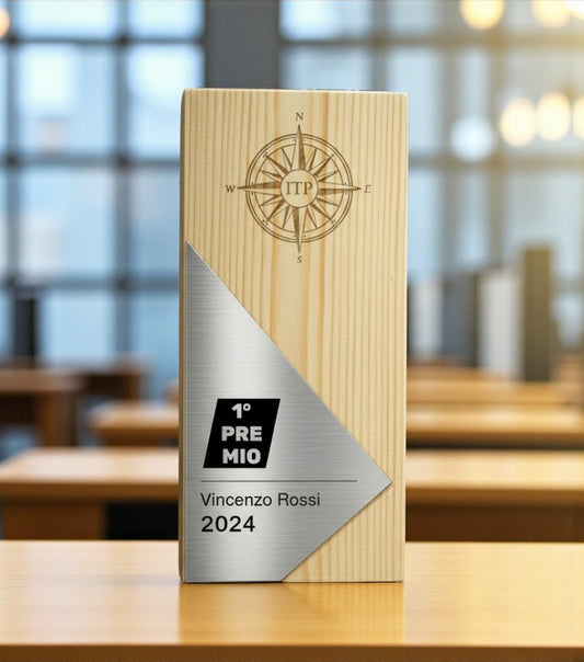 Trofeo blocco in legno personalizzato in argento abs spazzolato e legno Premio Design personalizzato su misura Targa moderna in legno Corsa unica Personalizzato