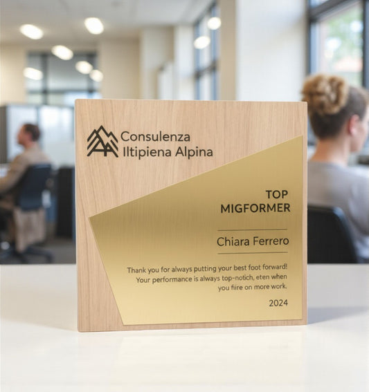 Trofeo in legno personalizzato in bronzo abs spazzolato e legno Premio Design personalizzato su misura Targa moderna in legno Corsa unica Personalizzato