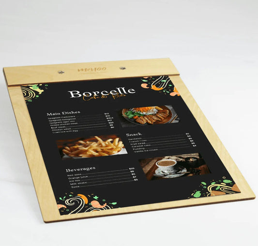 PORTAMENU A4 personalizzati in legno con incisione laser fatti a mano portamenu su misura per ristorante pub bar formato a4