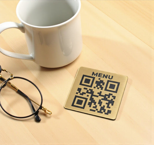 qr code economici in ottone o acciaio abs da tavolo Portamenu 10-50-100 pz personalizzati con incisione laser logo ristorante