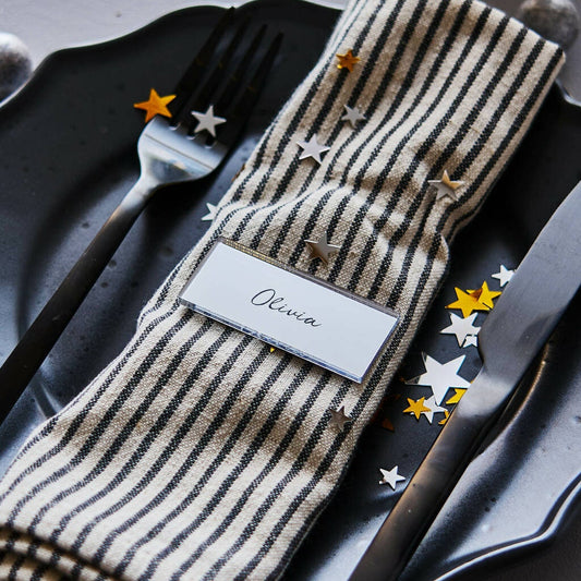 Tag / Segnaposto in plexiglass specchiato rettangolare oro o argento Battesimo / Matrimonio / Nozze / Comunione