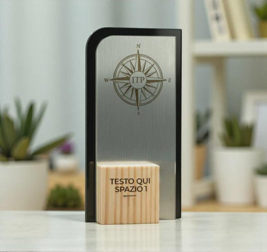 trofeo moderno argento in pino massello, premio quadrato personalizzato abbinato a cornice flessibile in ottone, targa di riconoscimento,
