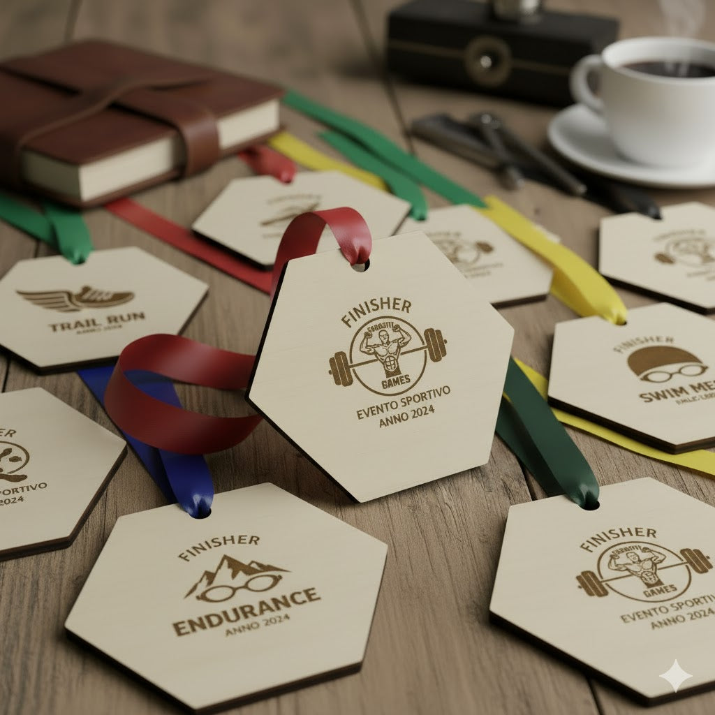 EC Laser Studio crea per te le medaglie di legno personalizzate perfette per la tua competizione, gara, maratona.