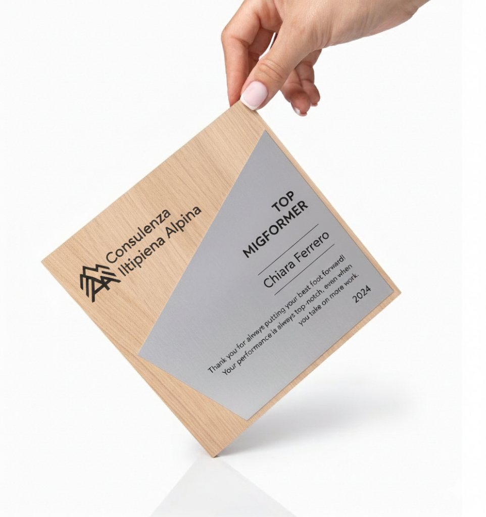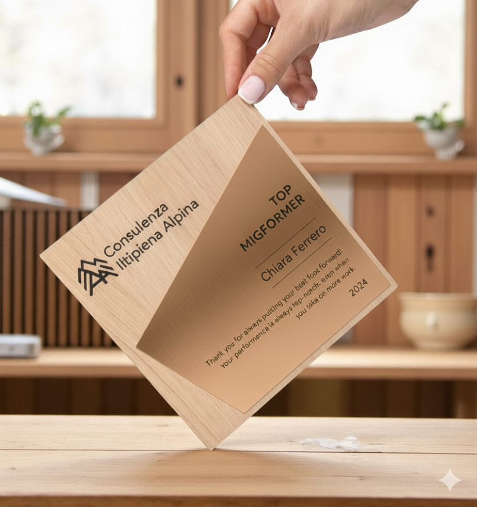 Trofeo in legno personalizzato – Premio di riconoscimento